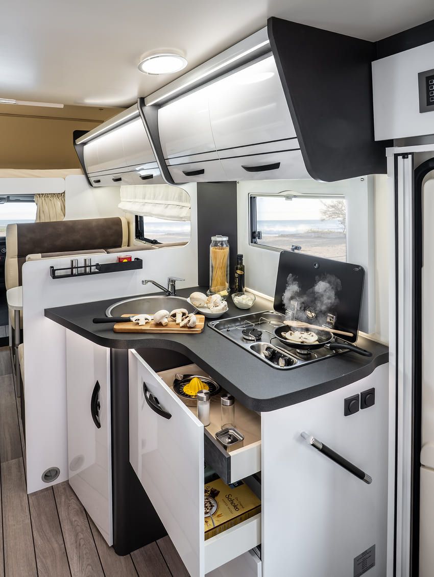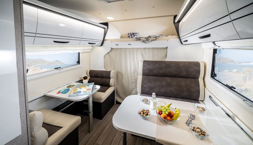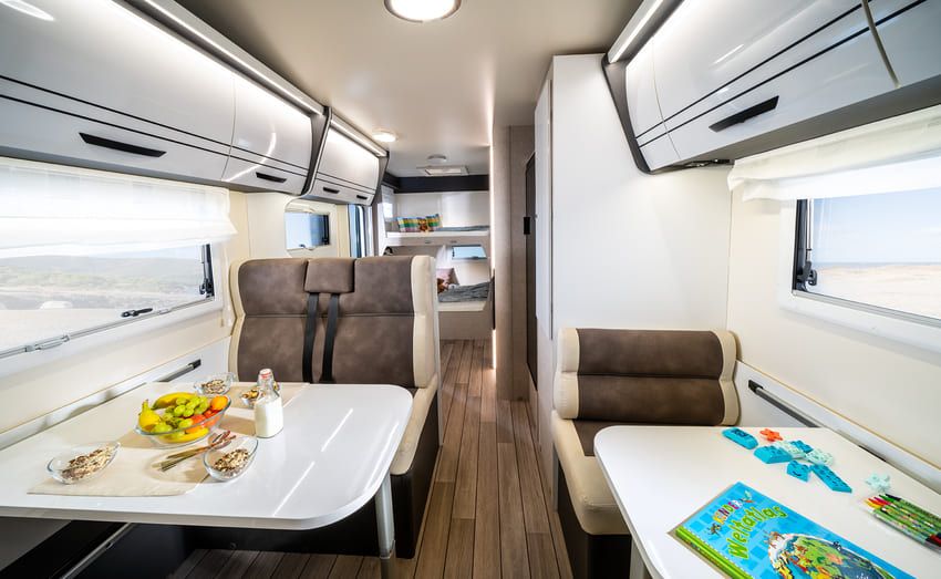 An jedem Ort. Zu jeder Zeit. Dies wohnliche und großzügige Alkoven-Modell bietet für Reisemobilisten alles, was man zum Wohlfühlen und Entspannen braucht. Damit sind Sie einfach überall zu Hause und verschmelzen dank der riesigen Fenster an jedem Ort sofort mit der Schönheit der Natur. Erleben Sie und Ihre Familie grenzenlosen Reisespaß mit der umfangreichen Ausstattung und den cleveren Details dieses Alkoven-Modells.